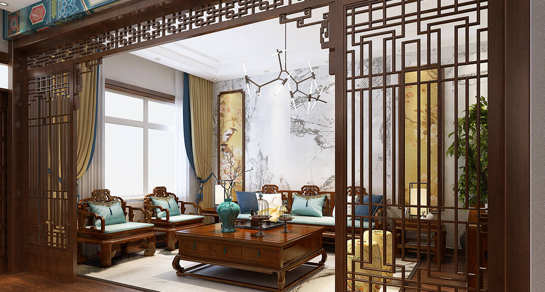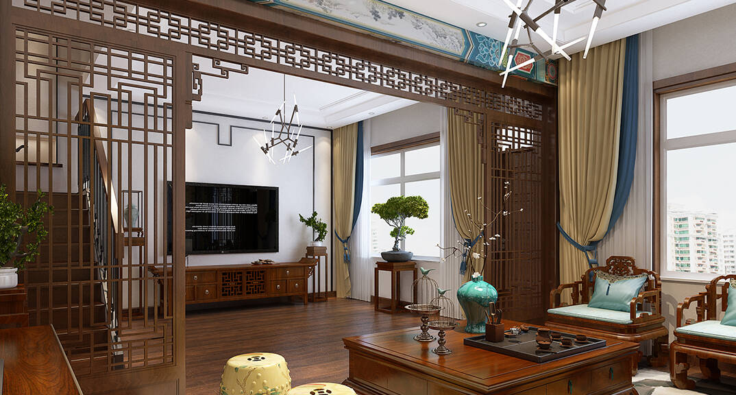充滿中式韻味的基礎(chǔ)格調(diào),與新元素共生,起居室的設計闡述的事千百年來從未易改的東方哲學進階人生。一草一木皆是中國傳統(tǒng)意向的完美再現(xiàn),經(jīng)典又和諧。