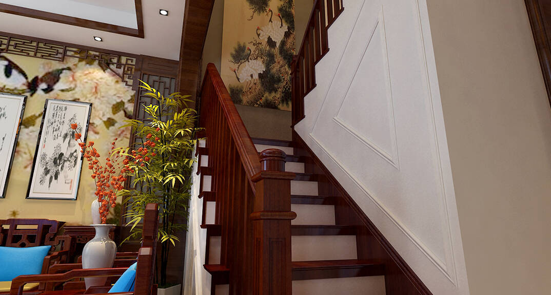 安納溪220㎡獨(dú)棟別墅樓梯古典中式風(fēng)格裝修案例效果圖