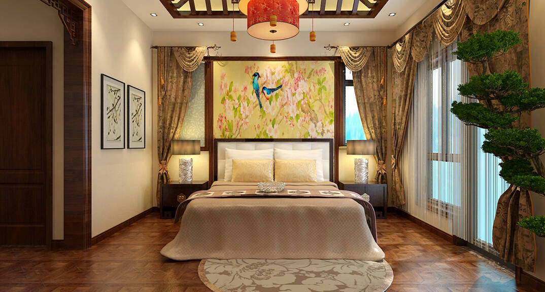 安納溪220㎡獨(dú)棟別墅臥室古典中式風(fēng)格裝修案例效果圖