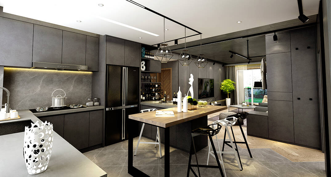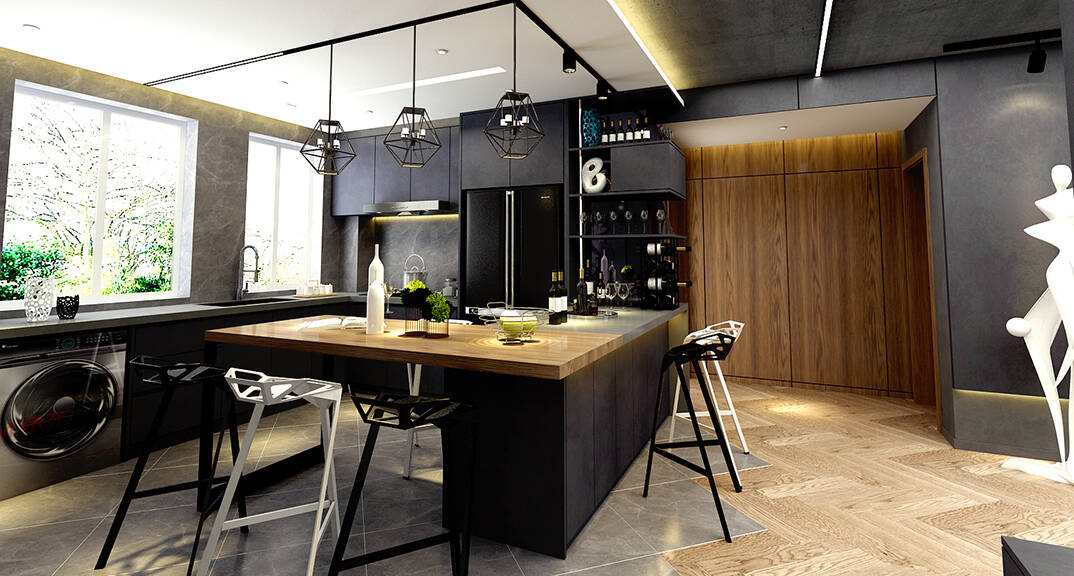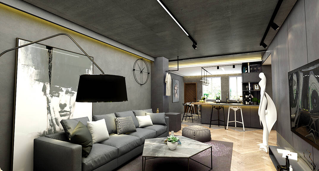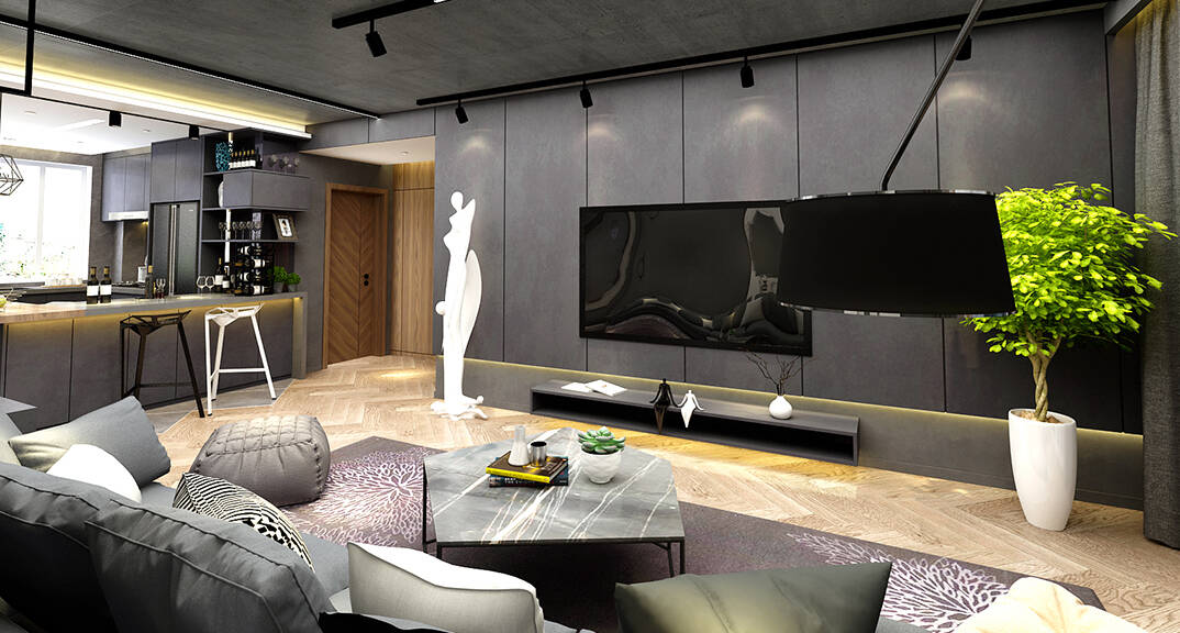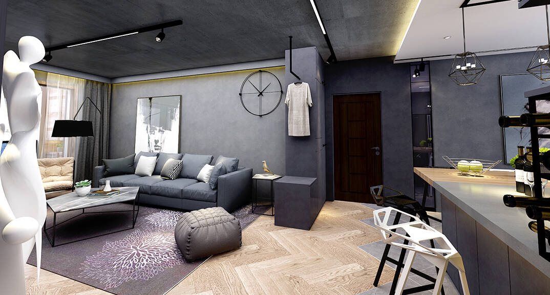 云龍港灣115㎡平層現(xiàn)代工業(yè)風(fēng)格裝修案例效果圖