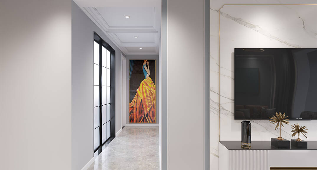 膠州機(jī)場(chǎng)公寓93㎡二室一廳過(guò)道走廊輕奢風(fēng)格裝修案例效果圖