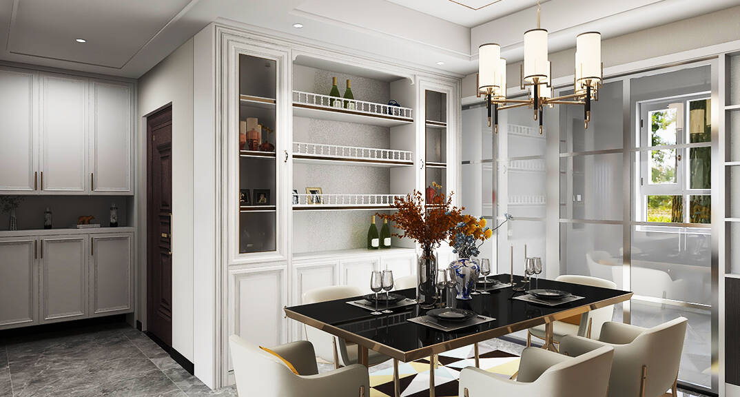膠州機(jī)場(chǎng)公寓138㎡二室一廳餐廳輕奢風(fēng)格裝修案例效果圖