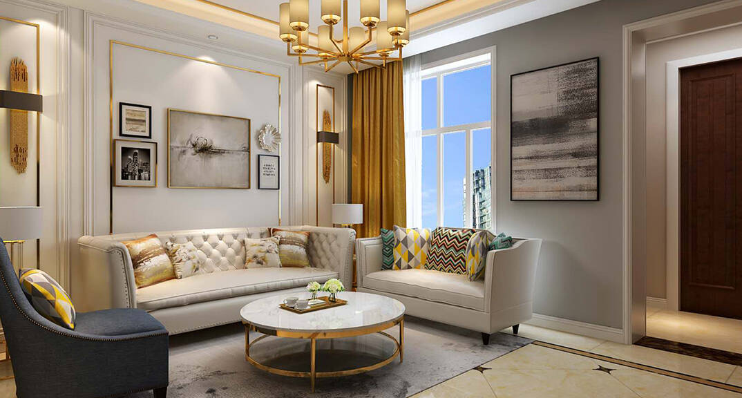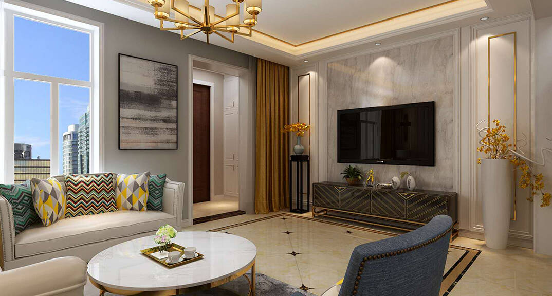 寶龍大沽河藝術村136m2美式風格客廳裝修案例