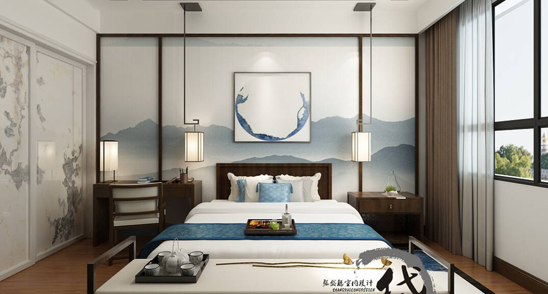 縵沙半島115㎡四室兩廳兩衛(wèi)臥室現(xiàn)代中式風(fēng)格裝修案例效果圖