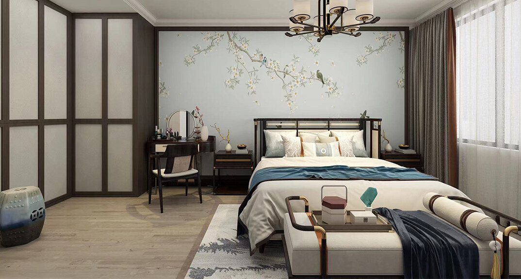 鑫江華府150㎡別墅上疊臥室新中式風(fēng)格裝修案例效果圖