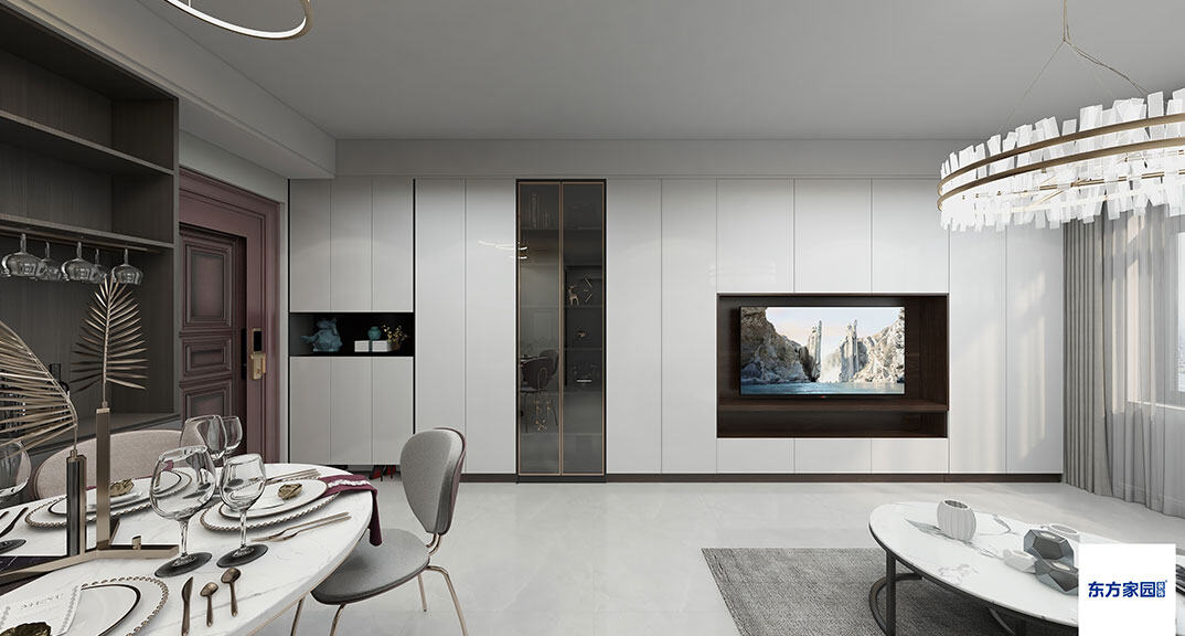 悅海地120㎡三室兩廳客餐廳現(xiàn)代簡(jiǎn)約風(fēng)格裝修案例效果圖