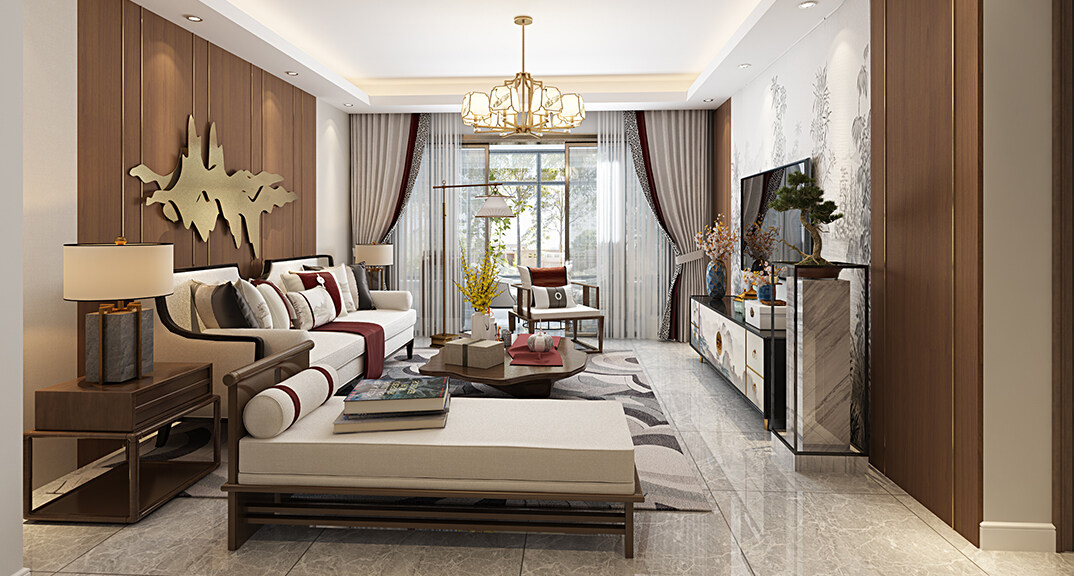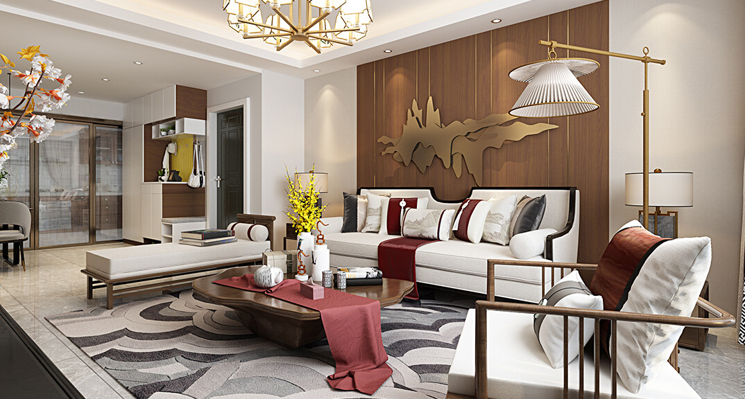 天寧首府128㎡三室兩廳客廳新中式風(fēng)格裝修案例效果圖