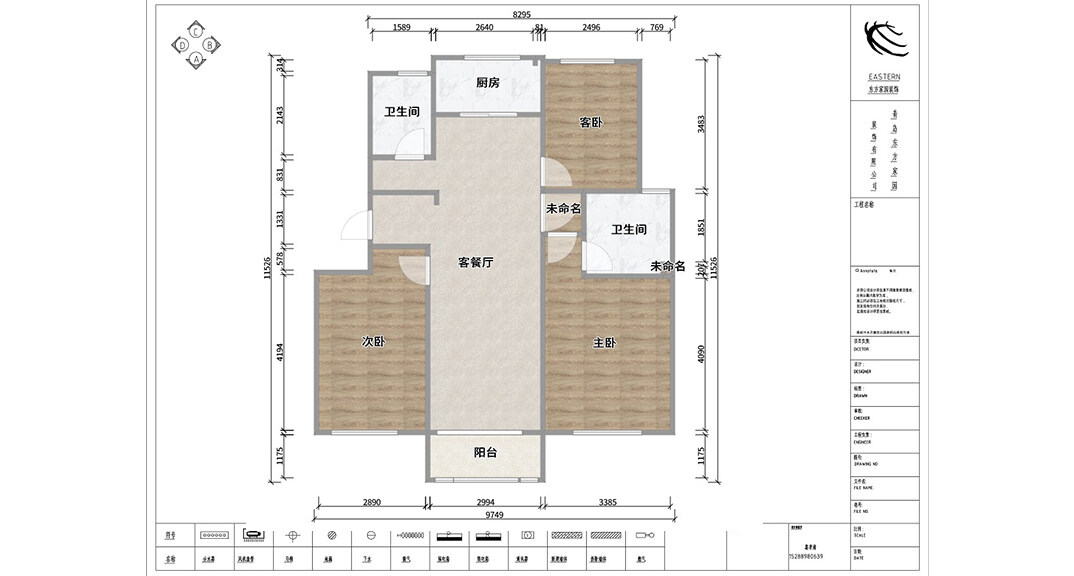 青鋼小鎮(zhèn)105㎡三室兩廳戶型平面布局圖