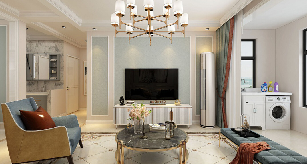 青鋼小鎮(zhèn)105㎡三室兩廳客廳電視簡(jiǎn)歐現(xiàn)代風(fēng)格裝修案例效果圖