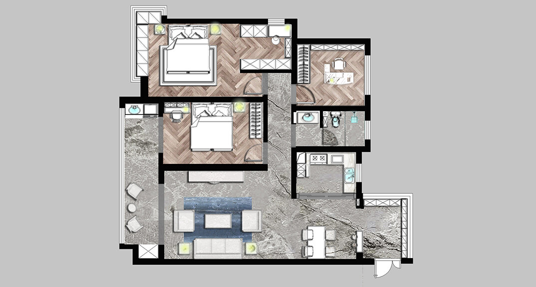 壹號(hào)學(xué)府132㎡三室兩廳次臥美式風(fēng)格裝修案例效果圖