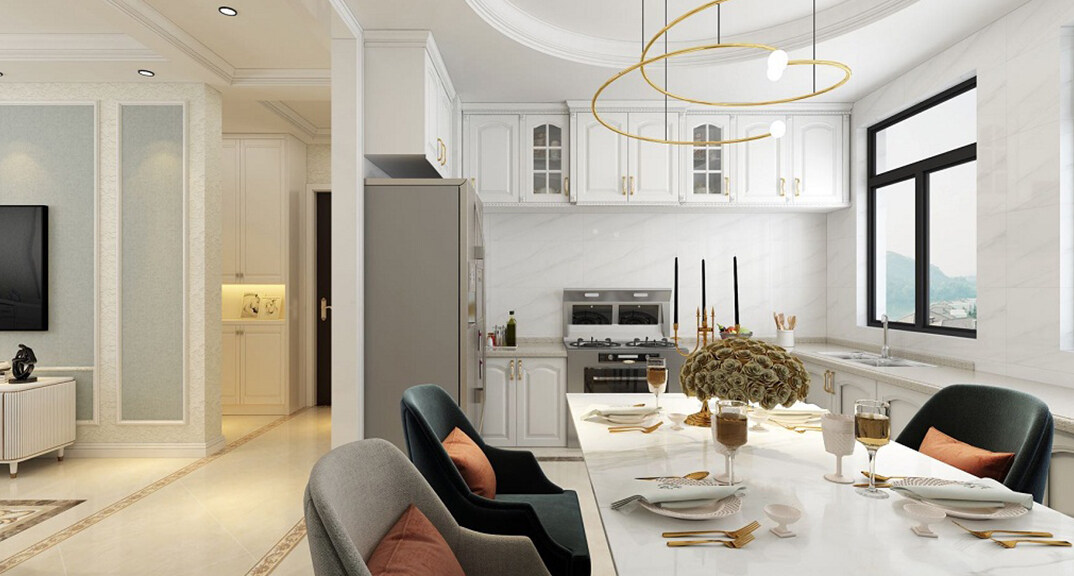 桂花園110㎡三室兩廳餐廳輕奢風(fēng)格裝修案例效果圖