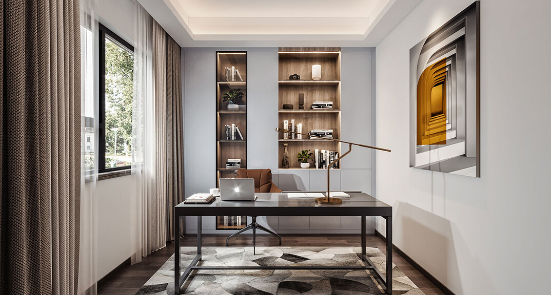 日照港第一生活區(qū)139㎡三室兩廳書(shū)房新中式風(fēng)格裝修案例效果圖
