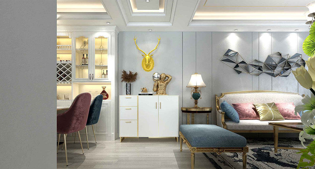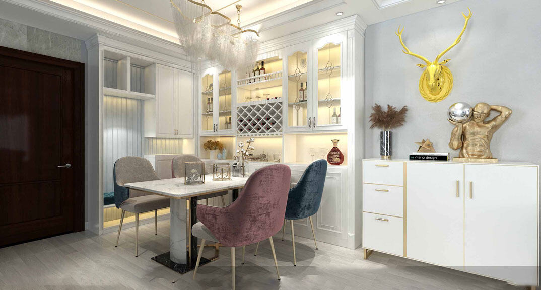 安泰德園130㎡復(fù)式餐廳美式輕奢風(fēng)格裝修案例效果圖