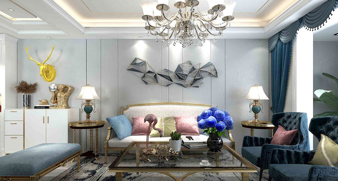 安泰德園130㎡復(fù)式客廳電視美式輕奢風(fēng)格裝修案例效果圖