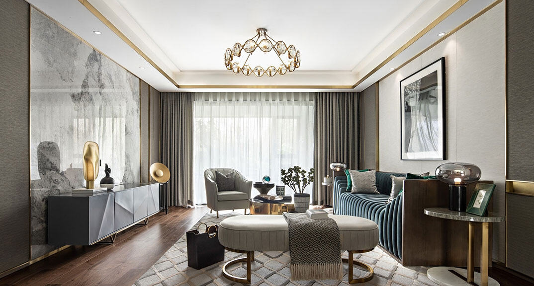 依云四季118㎡三室兩廳客廳美式簡約風格戶型研發(fā)案例效果圖