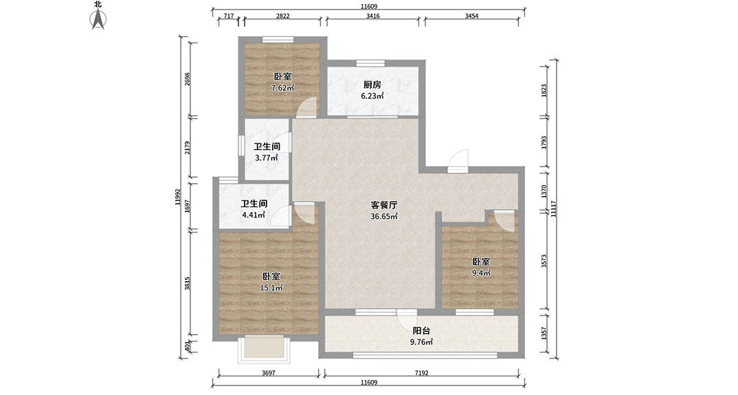 依云四季118㎡三室兩廳次臥美式簡約風格戶型研發(fā)案例效果圖