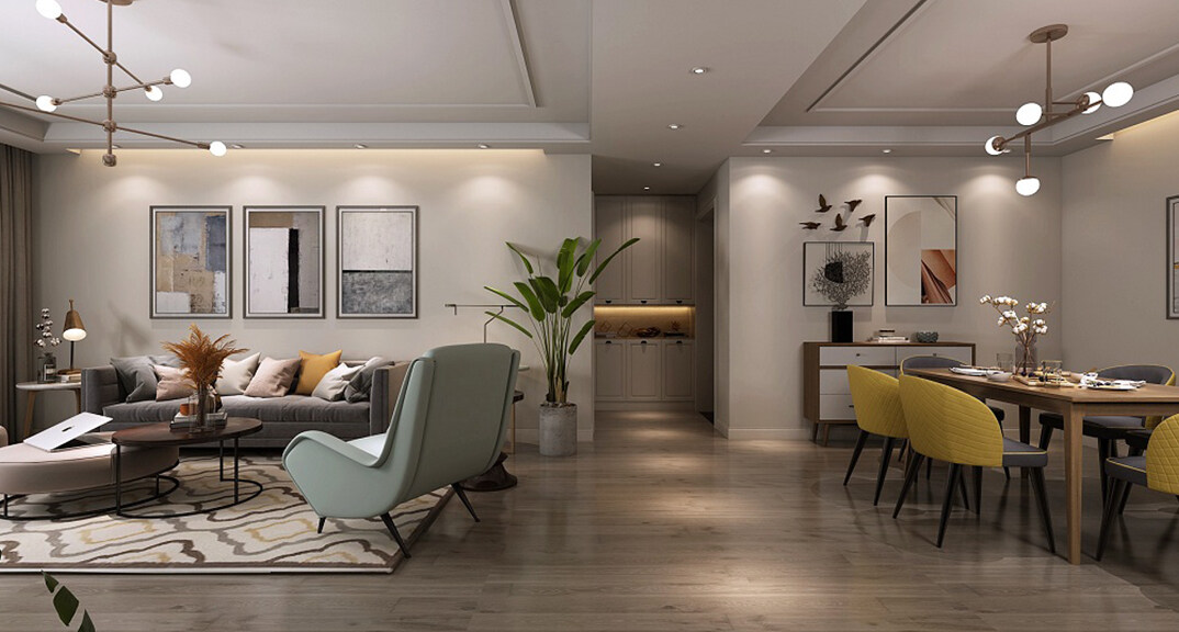 海信半山蘭亭116㎡三室兩廳客餐廳現(xiàn)代簡(jiǎn)約風(fēng)格裝修案例效果圖