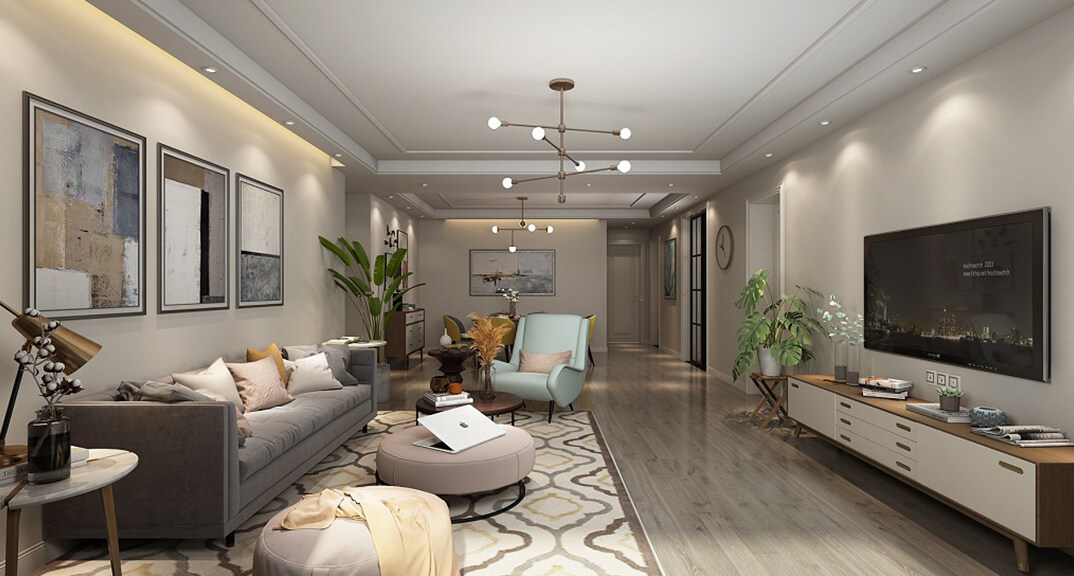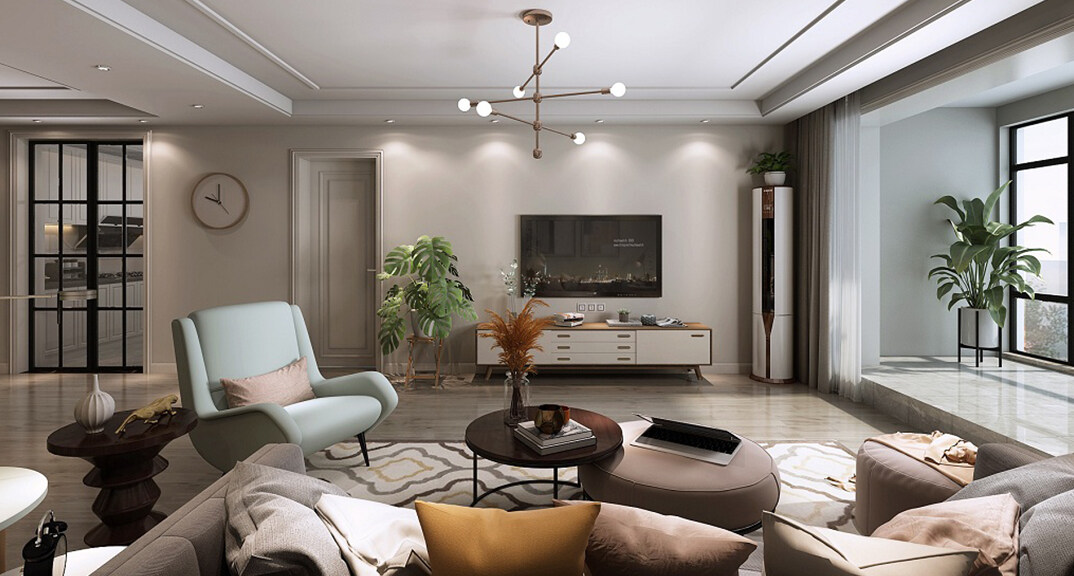 海信半山蘭亭116㎡三室兩廳客廳現(xiàn)代簡(jiǎn)約風(fēng)格裝修案例效果圖
