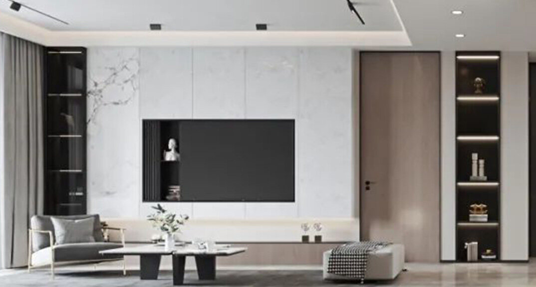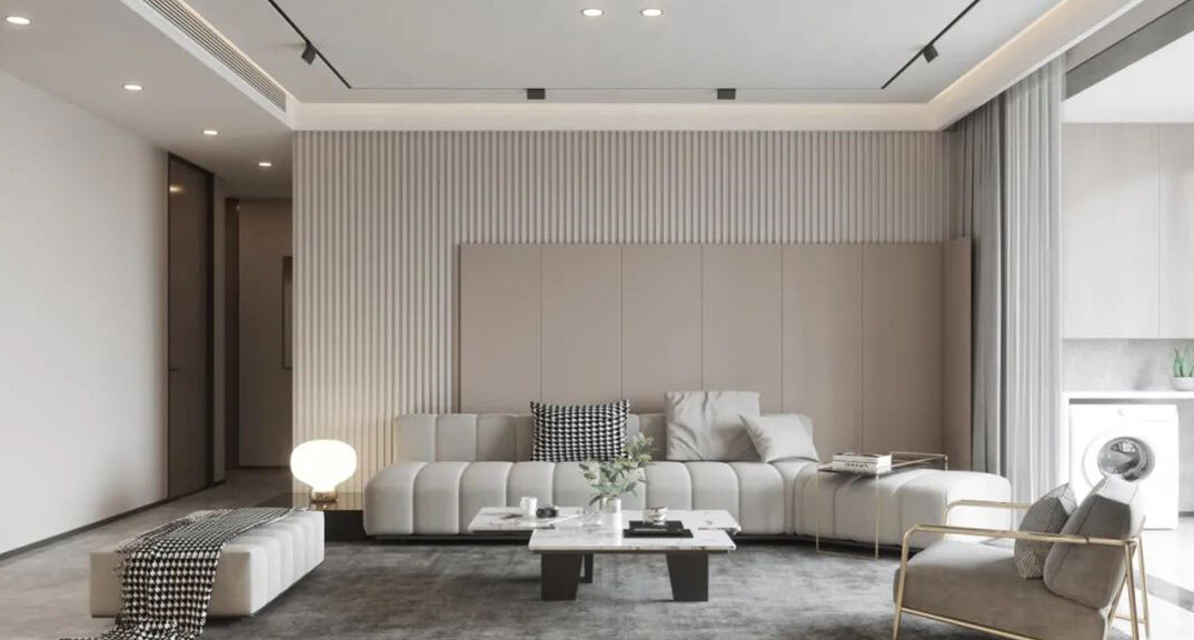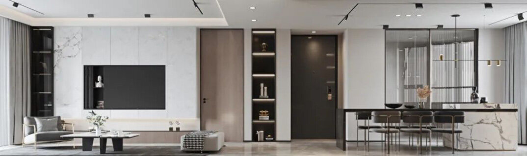 華僑府邸180㎡三室兩廳客廳現(xiàn)代輕奢風格裝修案例效果圖