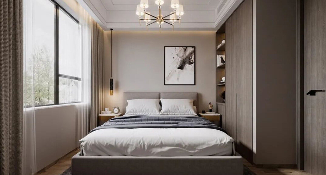 華僑府邸180㎡三室兩廳臥室現(xiàn)代輕奢風格裝修案例效果圖