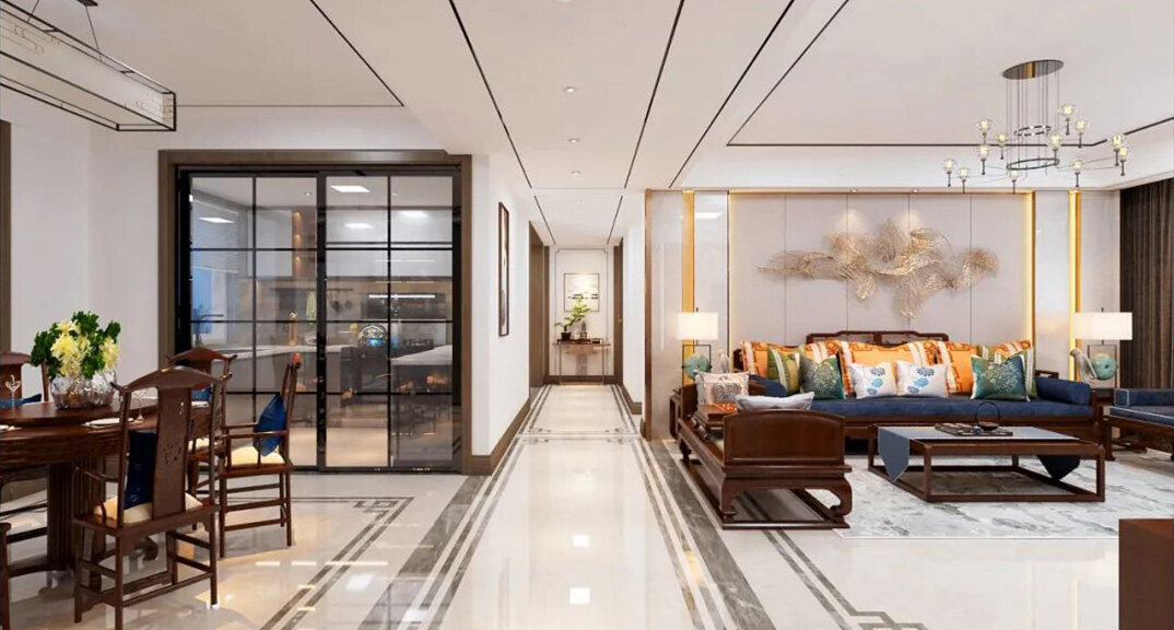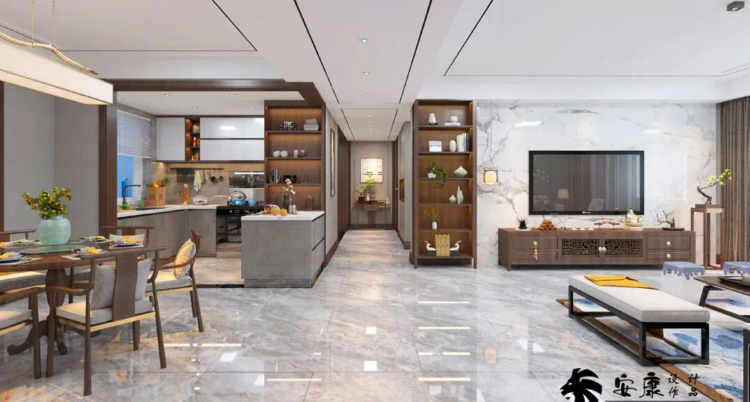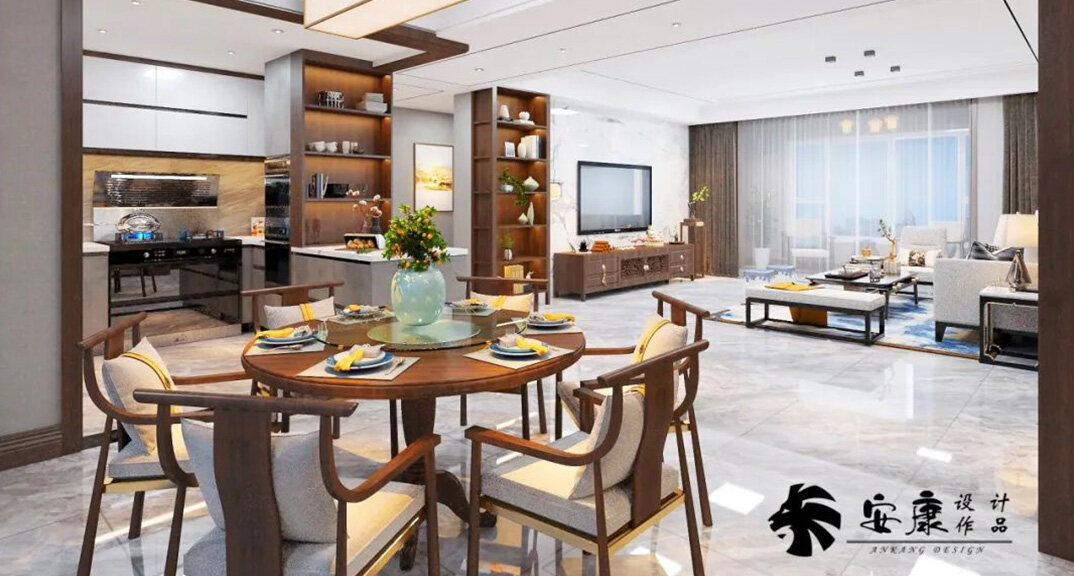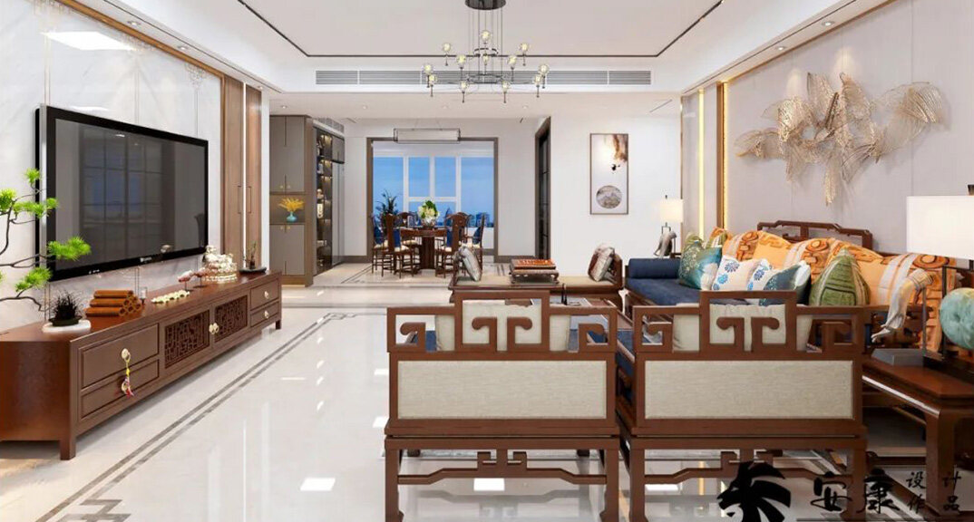 金域?yàn)懲?80㎡四室兩廳過(guò)廳新中式風(fēng)格風(fēng)格裝修案例效果圖
