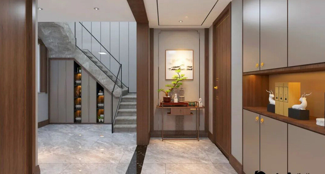 金域?yàn)懲?80㎡四室兩廳入戶玄關(guān)新中式風(fēng)格風(fēng)格裝修案例效果圖