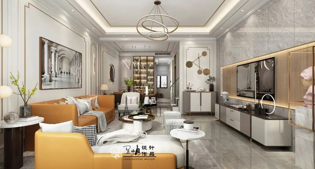 原筑300㎡別墅客廳現(xiàn)代輕奢風(fēng)格裝修案例效果圖