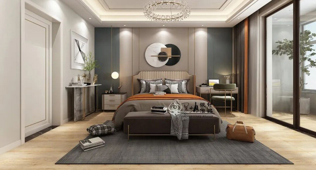 原筑300㎡別墅主臥現(xiàn)代輕奢風(fēng)格裝修案例效果圖