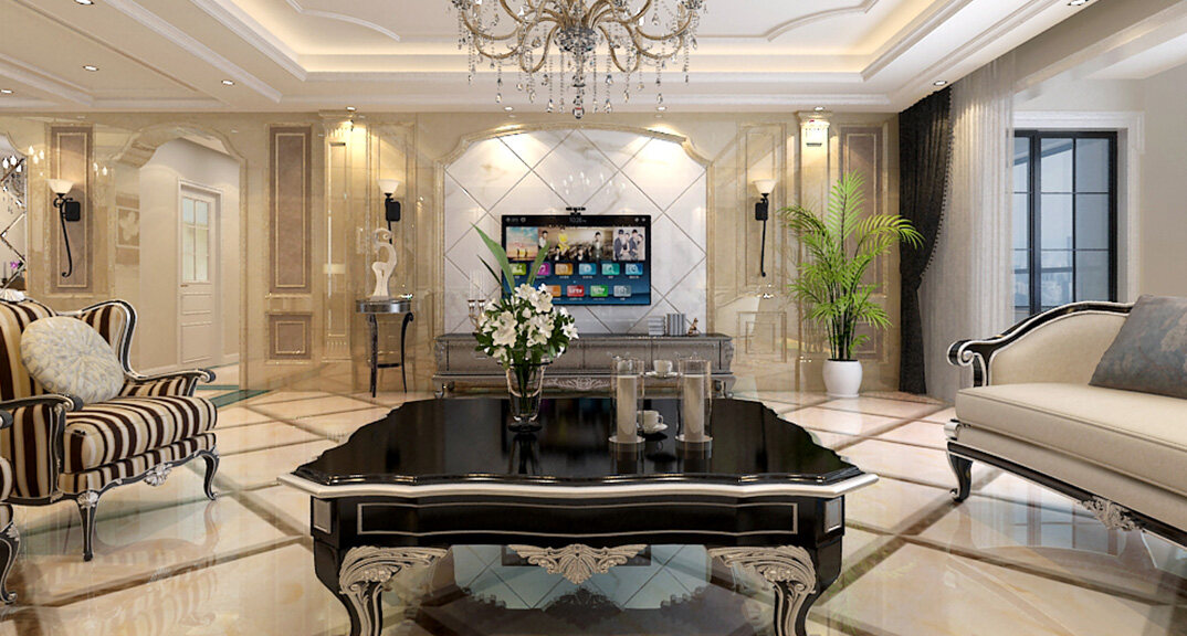 魯潤靜園234㎡四室兩廳客廳簡歐風(fēng)格裝修案例效果圖