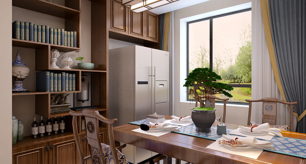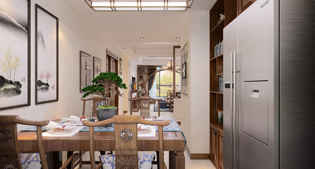 新興中心城125㎡三室兩廳餐廳新中式風格裝修案例效果圖