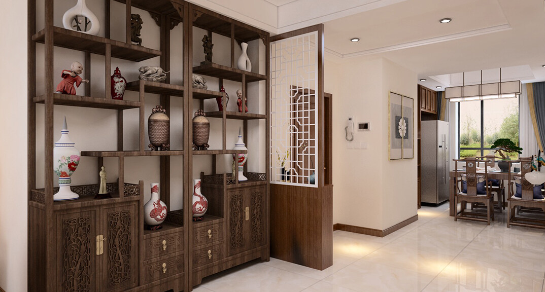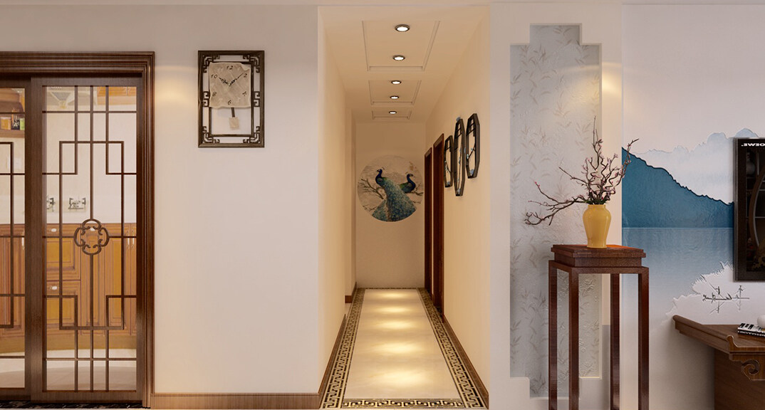 新興中心城125㎡三室兩廳門廳走廊新中式風格裝修案例效果圖