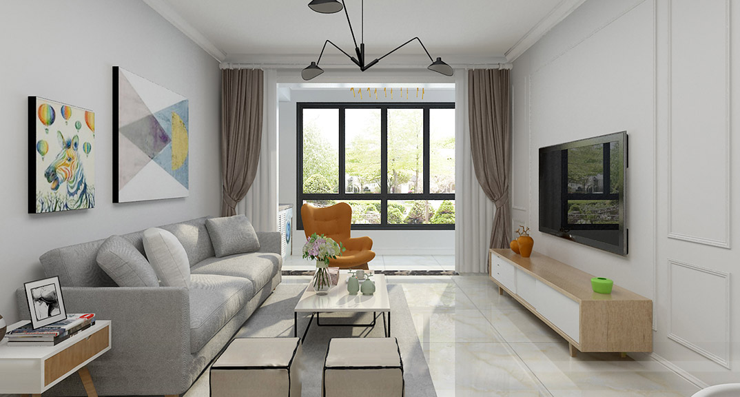 永利國際87㎡兩室兩廳客廳現(xiàn)代風(fēng)格裝修案例效果圖