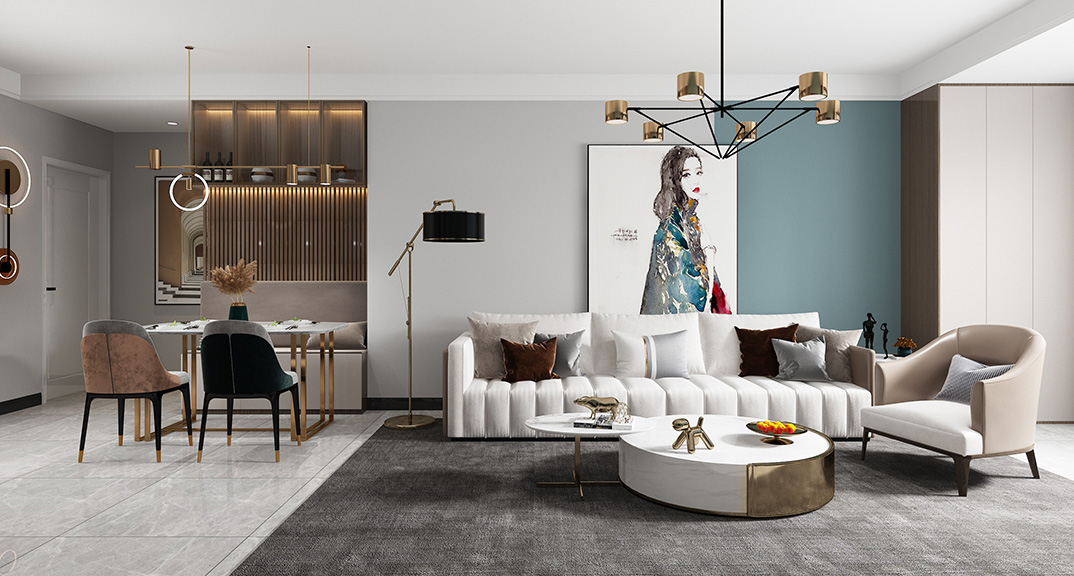 君悅府124㎡三室兩廳客餐廳現(xiàn)代風(fēng)格裝修案例效果圖