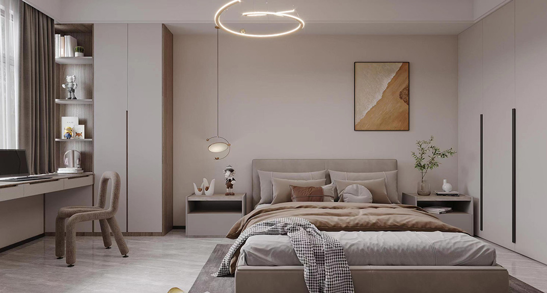 巴黎名城115㎡三室兩廳臥室現(xiàn)代簡約風(fēng)格裝修案例效果圖