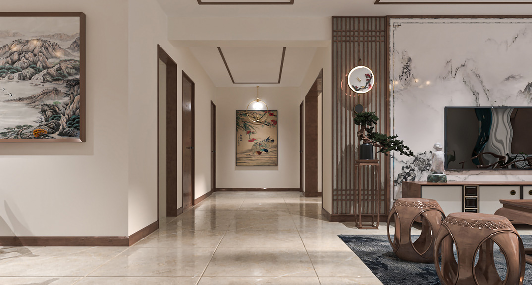 海洋名仕公館172㎡三室兩廳走廊新中式風(fēng)格裝修案例效果圖.jpg