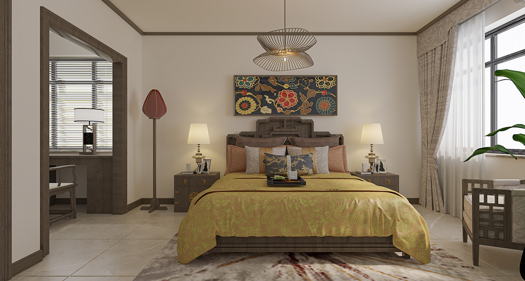 海洋名仕公館172㎡三室兩廳臥室新中式風(fēng)格裝修案例效果圖