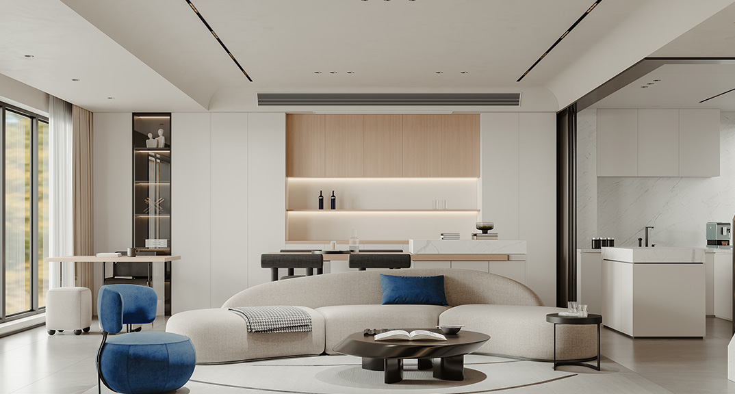 紫荊閣300㎡別墅下疊客廳新中式風格裝修案例效果圖1-詳細.jpg