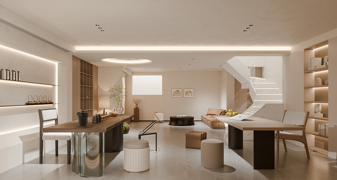 紫荊閣300㎡別墅下疊客廳茶室新中式風格裝修案例效果圖