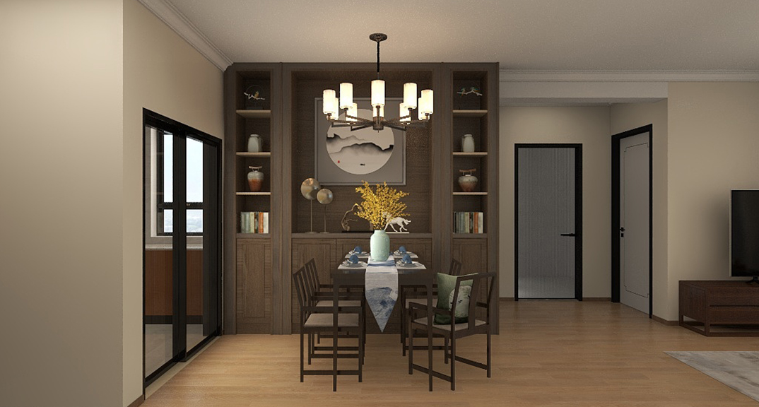 保利時(shí)代88㎡兩室兩廳餐廳新中式風(fēng)格戶型研發(fā)案例