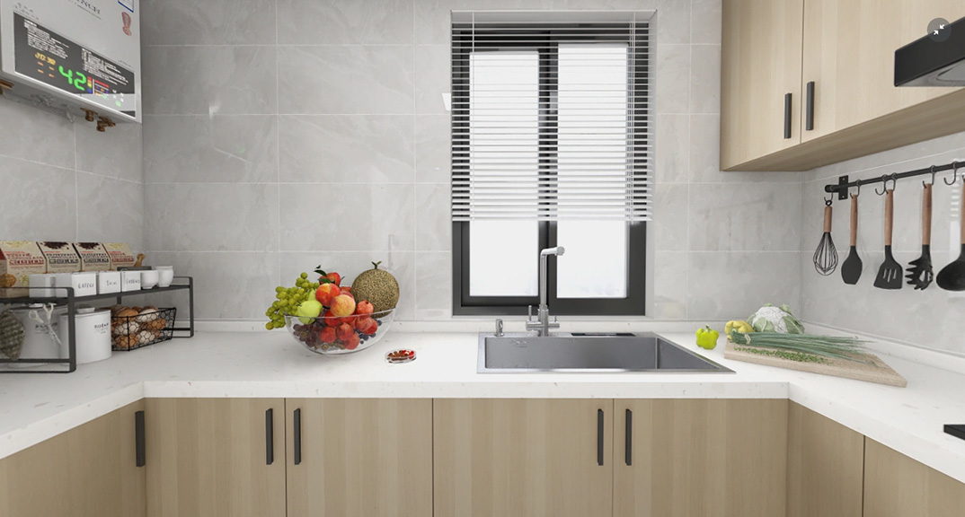 保利時(shí)代98㎡三室兩廳廚房原木風(fēng)戶型研發(fā)效果圖