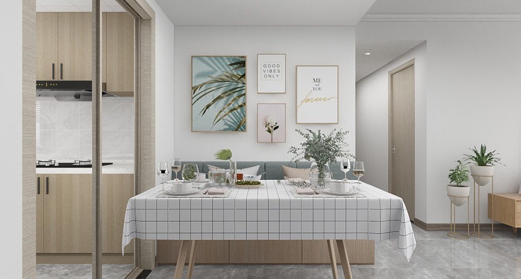 保利時(shí)代98㎡三室兩廳餐廳原木風(fēng)戶型研發(fā)效果圖
