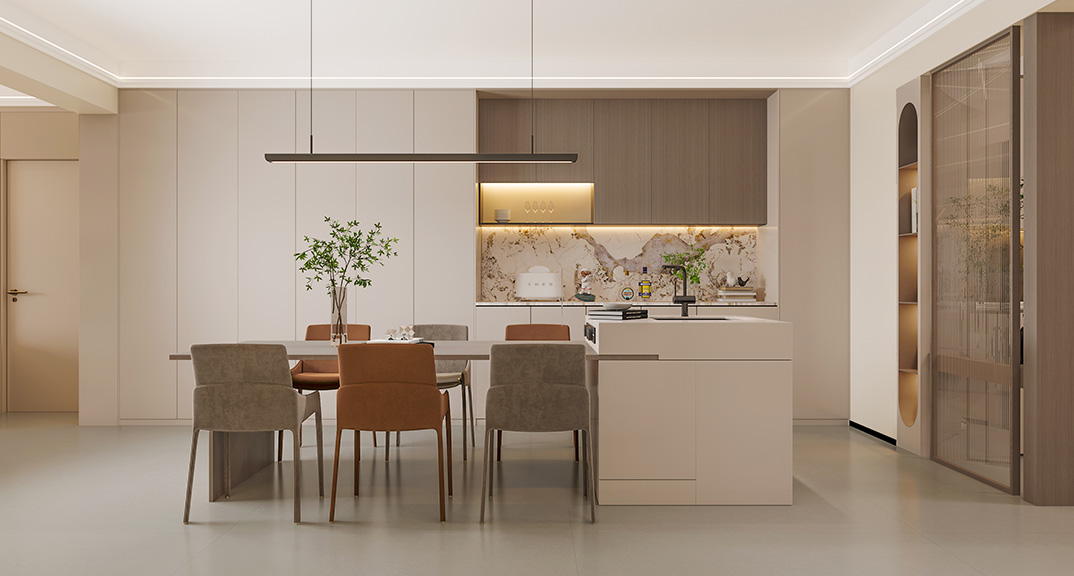 以簡潔、清晰和功能性為特征的室內(nèi)設(shè)計(jì);它主要強(qiáng)調(diào)了空間的簡化和精煉,追求線條簡單、空間通透、色彩明亮、材質(zhì)自然等特點(diǎn),注重形式與功能的結(jié)合。他們希望有一個(gè)時(shí)尚、現(xiàn)代的功能性空間,在整個(gè)空間的設(shè)計(jì)上用了暖灰調(diào)來與簡約的線條感來相呼應(yīng),能改造出一個(gè)通透、流暢的空間感。