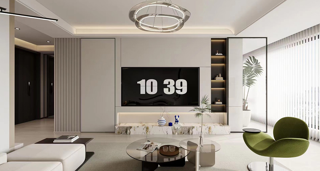 融創(chuàng)逸山136㎡三室兩廳客廳電視現(xiàn)代簡約風格裝修案例效果圖