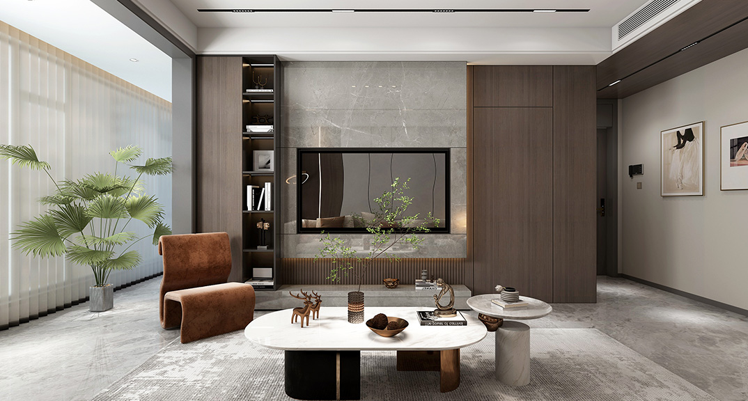 影都壹號127㎡三室兩廳客廳電視意式輕奢風格裝修案例效果圖-詳細.jpg