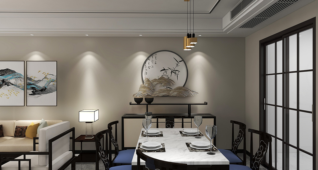 雍華府160㎡四室兩廳餐廳新中式風(fēng)格裝修案例效果圖