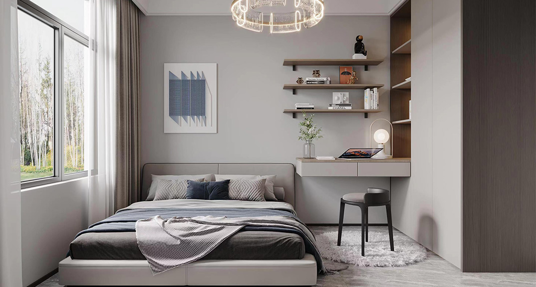 巴黎名城115㎡三室兩廳臥室現(xiàn)代簡約風(fēng)格裝修案例效果圖