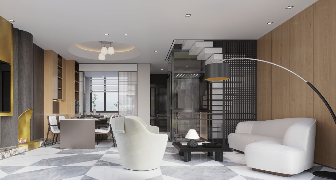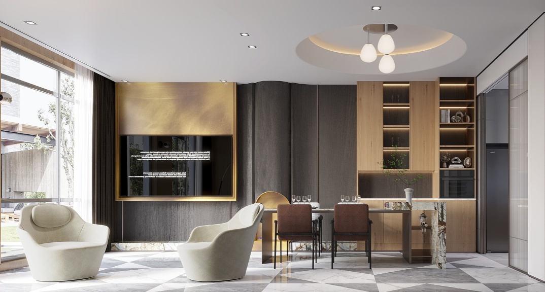 整體設(shè)計以深灰色、黑色為主色調(diào),搭配木飾面、原木地板和金屬裝飾,營造沉穩(wěn)內(nèi)斂的現(xiàn)代風(fēng)格。同時,注重空間的功能性和實用性,滿足業(yè)主及父母日常生活和休閑娛樂需求,打造舒適便捷、低調(diào)奢華的理想居所。