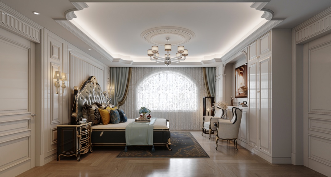 三層為主人私享空間。主臥寬敞明亮,配備獨(dú)立衣帽間和衛(wèi)浴,營造奢華舒適的休憩環(huán)境??团P可作為備用房間,滿足多樣化需求。