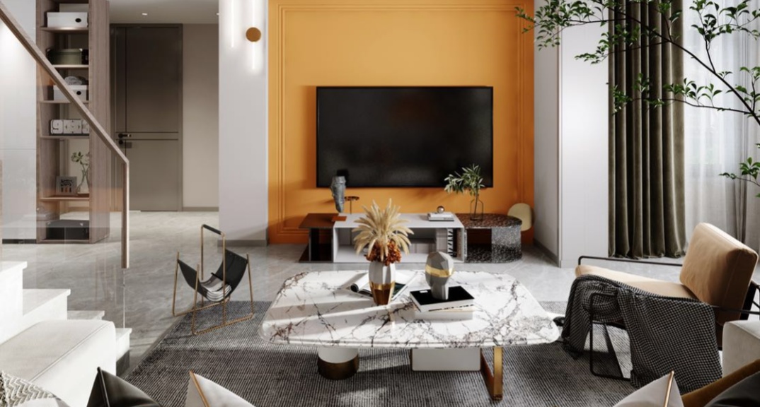一對(duì)95后小夫妻,造型要求簡(jiǎn)單、大方、流暢,注重線(xiàn)條的整體感和空間開(kāi)放感,暖色調(diào)則讓人感到溫馨和舒適,電視墻選擇用橙色系,作為點(diǎn)綴色,不僅可以展現(xiàn)不一樣的魅力,又可以確保整體造型既有重點(diǎn)又不失平衡,光線(xiàn)充足的房間讓人感到明亮開(kāi)闊。