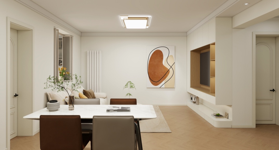 本案例整體風(fēng)格運(yùn)用了現(xiàn)代奶油原木風(fēng),原戶型客廳為暗廳,白色與原木色的運(yùn)用使空間更明亮溫馨,布局上增加了大量的收納空間,房間使用更加干凈整潔。
